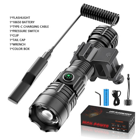 100000 루멘 LED 레이저 손전등, USB 충전식 클립형 사냥 및 사격용 레이저 토치